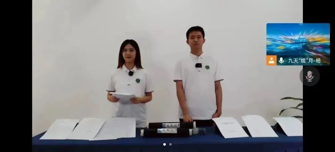 冯翔钰还清楚地记得比赛前的一个小细节,因为比赛转为线上,团队成员周思齐在学校和学院领导老师的共同建议和帮助下,想尽各种办法,最后从楼层外搬来盆栽植物、去文具店购买KT板、到废品站购入6个泡沫箱,一遍又一遍地调整室内物品摆放方案、调试设备,才最终解决了收音效果差的问题。