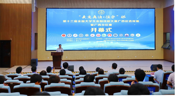 自治区教育厅高教处处长傅源方,广西大学党委副书记马献力,广西大学党委常委、校长助理、党委统战部部长、国有资产与实验室管理处处长姚作芳,广西大学副教务长、教务处处长耿葵花,广西本科高校材料类教学指导委员会秘书长陈国华,广西大学资源环境与材料学院领导及区内其他高校领导出席5月17日开幕式。开幕式由全国大学生金相技能大赛竞赛委员会委员、广西本科高校材料类教学指导委员会委员、广西大学资源环境与材料学院梁洁老师主持。