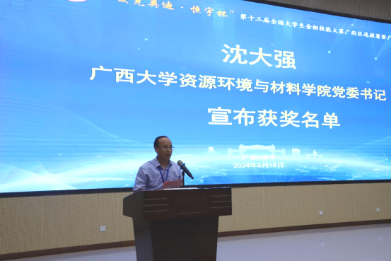 广西大学资源环境与材料学院党委书记沈大强宣布获奖名单