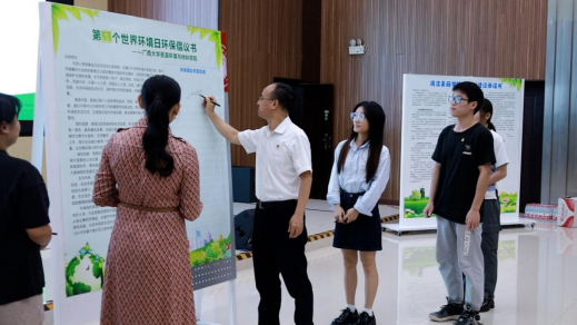 现场,大家集体观看2024年六五环境日国家主场(广西)主题歌MV、南宁市六五环境日主题宣传片和《广西生态优势金不换》环保视频,宣读资源环境与材料学院第53个世界环境日倡议书,签署《清洁美丽资环材建设承诺书》。