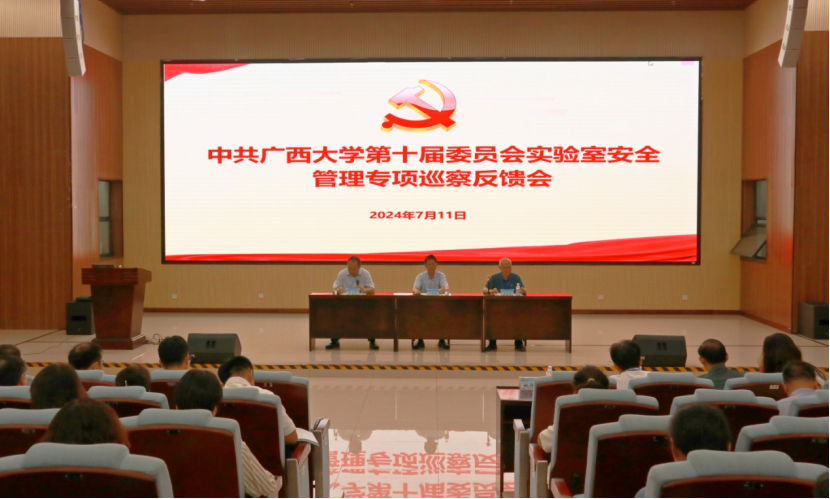 7月11日,学校党委在资源环境与材料学院123报告厅召开中共广西大学第十届委员会实验室安全管理专项巡察反馈会,校党委第六巡察组向我院等四个被巡察学院党组织反馈巡察情况。校党委常委、副校长宁旭初出席会议并讲话。