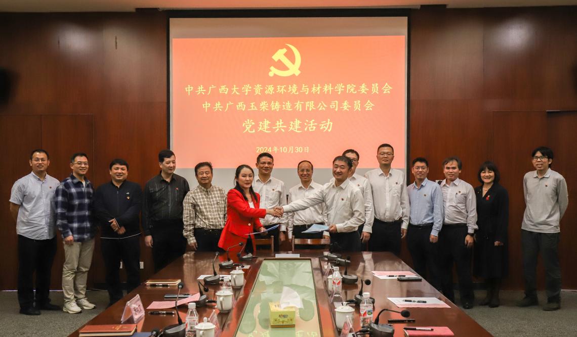 为贯彻落实党的二十届三中全会关于推进教育科技人才体制机制一体改革的部署,进一步发挥党建引领作用,促进高校与企业产学研深度融合,10月30日,我院党委与广西玉柴铸造有限公司党委(以下简称“玉柴铸造”)开展党建共建活动。