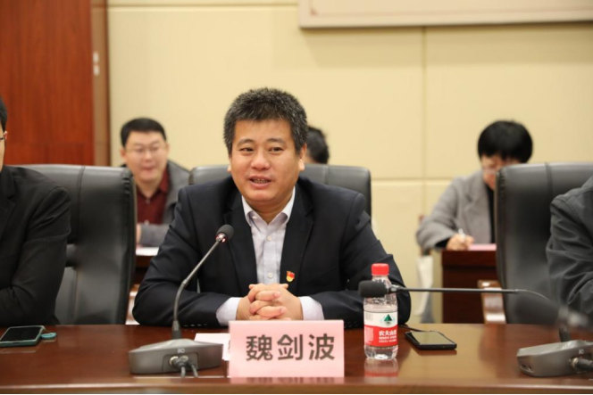 魏剑波介绍华南农业大学材料与能源学院建设发展成效以及本次“党建强国谱新篇,赋能产业促发展”主题党日活动暨“强国行”专项行动情况。