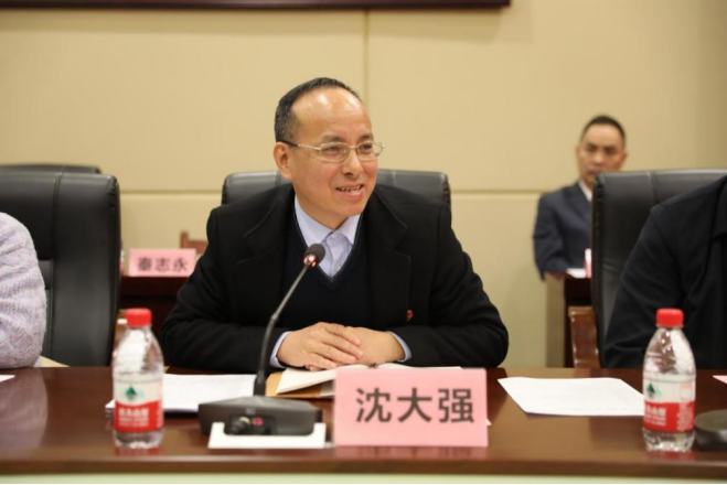 交流座谈会上,沈大强介绍了学校的基本情况和学院党建引领教学科研、平台队伍和学科专业的建设发展现状。