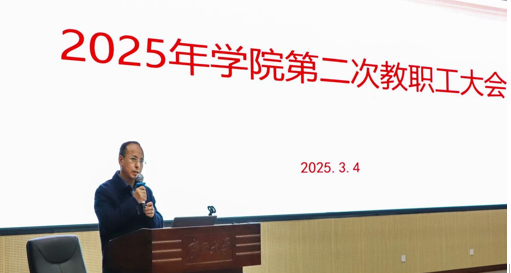3月4日下午,我院召开新学期工作布置会暨学院2025年第二次教职工大会。会议由院党委书记沈大强主持,全院教职工参会。