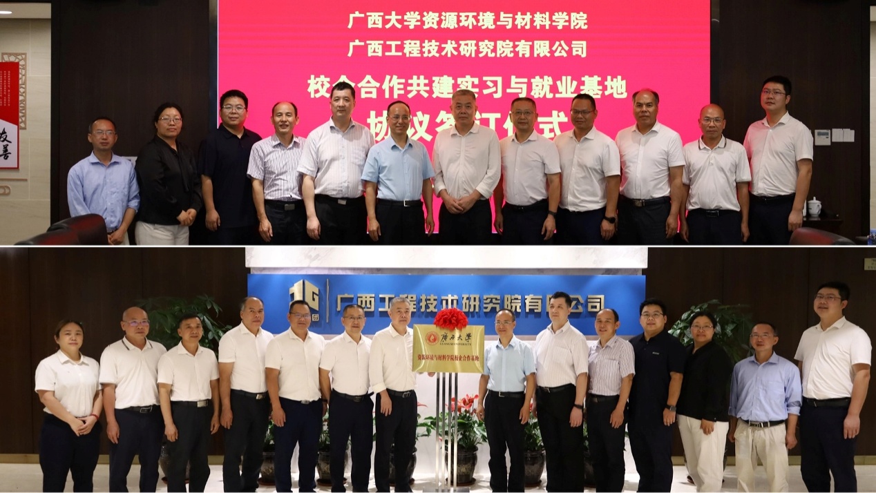 本次活动,双方代表正式签订院企加强合作的《校企合作协议》《共建实习与就业基地协议》;沈大强、覃献军共同为“广西大学资源环境与材料学院校企合作基地”揭牌。