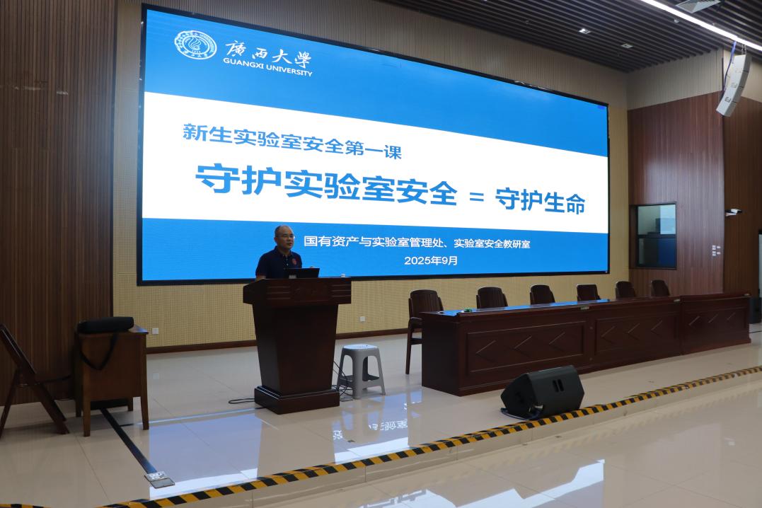 为切实增强 2025 级新生实验室安全防范意识,夯实科研实践起步阶段的安全基础,帮助新生快速掌握实验室安全规范,9月19 日上午,有着丰富实验室安全管理经验的校国有资产与实验室管理处副处长陆翔到我院进行新生实验室安全第一课:“守护实验室安全 = 守护生命”的专题讲座,学院全体本科新生参与,共同开启实验室安全知识学习的重要一课。