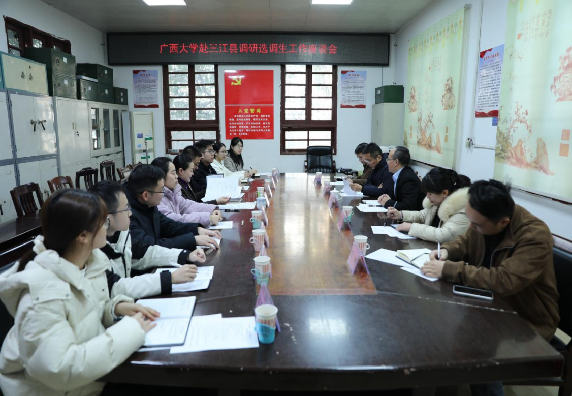 在三江侗族自治县的调研座谈会上,县委常委、组织部部长江昕颐向调研组介绍了党委对选调生的培育机制、选调生校友的发展情况,以及加强校地合作密切交往共建合作双赢机制的期待。双方一致认为,选调生是推进基层治理和乡村振兴的重要力量,校地联合培养必须紧扣地方发展特色与人才成长规律。在三江聚焦将生态保护、民族文化、特色农业等领域和产业发展需求,建立健全常态化协作机制,通过基地共建、项目共研等方式,实现人才共育、发展共赢。