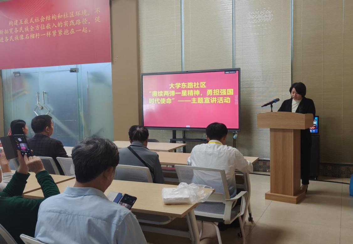 以青年之声传播红色信仰,以志愿行动温暖基层社区,11月14日,我院学工组陆一龙老师带领志愿团队,前往大学东路社区开展“赓续‘两弹一星’精神”主题宣讲与社区清洁志愿服务活动。