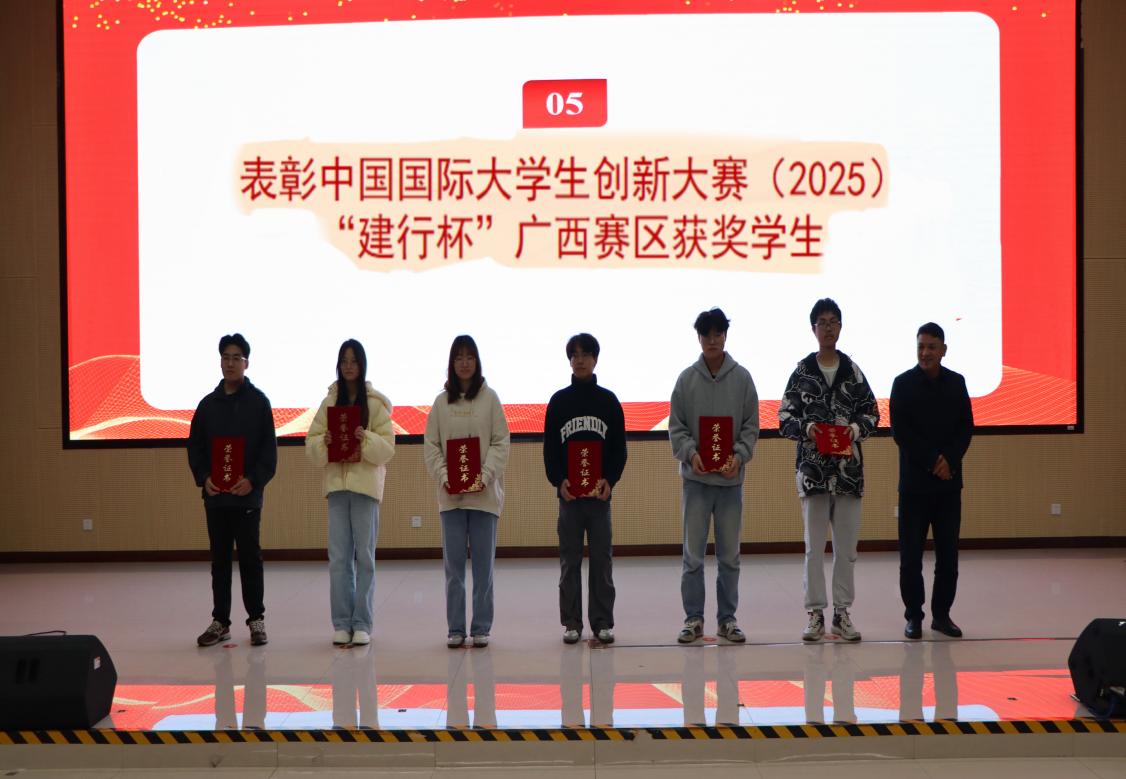 潘利文老师为中国国际大学生创新大赛(2025)“建行杯”广西赛区获奖学生颁奖