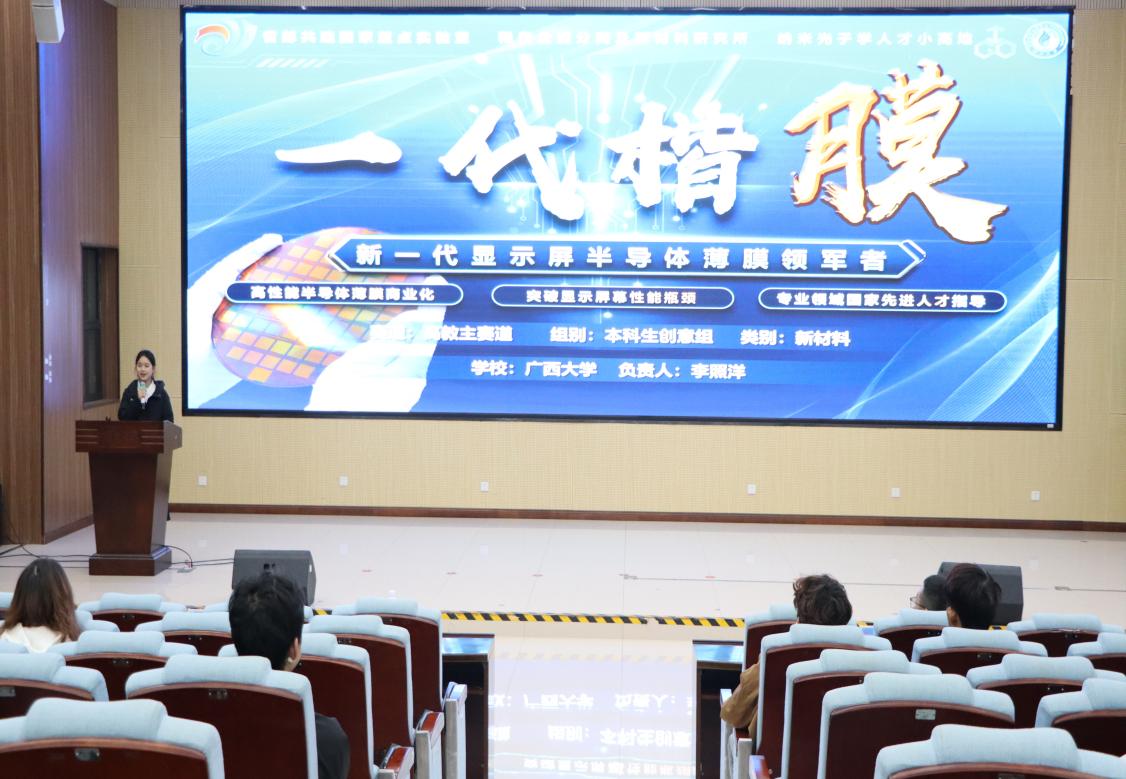 现场,领导嘉宾为国创赛、“挑战杯”等赛事获奖团队及个人颁奖,并邀请2025年国创赛国铜项目《一代楷膜——新一代显示屏半导体薄膜领军者》团队进行路演展示。