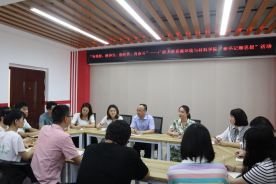 我院结合学习贯彻习近平新时代中国特色社会主义思想主题教育总体安排,5月26日下午在东校园东27栋学生宿舍党员活动室举办“有理想、敢担当、能吃苦、肯奋斗”——“和书记聊思想”活动,学院党委沈大强书记、党委吴达慧副书记及专职辅导员与学院20余位学生党员代表座谈交流,面对面了解同学们思想、学习、生活等各方面情况,听取大家对学院相关工作的意见和建议。